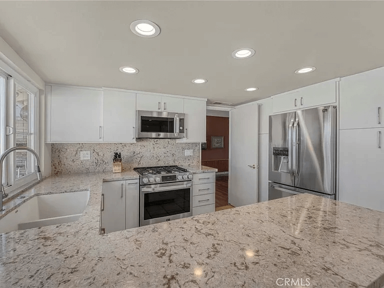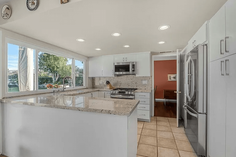 Welcome to this charming one-story residence nestled in the serene Woodland Crest area located just south of Mulholland Drive along Topanga Canyon Blvd. This beautiful home boasts a tranquil setting on a quiet street with breathtaking 180-degree views of the Valley. Upon entering through the spacious foyer, you are greeted by the inviting living room with plantation shutters, recently added wood-like flooring, and a cozy fireplace, creating a warm and welcoming ambiance. The kitchen has been thoughtfully updated with high-end Omega cabinetry, elegant quartz countertops, and stainless-steel appliances, providing a perfect blend of style and functionality. The kitchen seamlessly flows into the adjacent family room, making it an ideal space for entertaining and family gatherings. The primary bedroom offers unobstructed views, providing a peaceful retreat. The en-suite bath features an updated shower, adding a touch of modern luxury. With a total of four bedrooms, this home offers versatility for various living arrangements. The second bathroom has been tastefully updated. Step outside into the spacious yard, where you’ll find a refreshing pool and spa, creating an oasis for relaxation and entertainment. An outdoor kitchen adds a delightful touch to your outdoor experience, complemented by an included storage shed for convenience. The landscaped yard features artificial-turf, a lemon tree and the amazing view creating a harmonious blend of beauty and functionality. The property spans from street to street, offering a unique expansive lot. The front yard features decomposed granite with low-water usage landscaping, reflecting a commitment to sustainability. Practical updates include a new water heater, an updated main water line, and an attached 2-car and direct access garage. This special home with its thoughtfully designed interiors, outdoor amenities, and stunning views provides a perfect blend of comfort and style in the coveted Woodland Crest area.