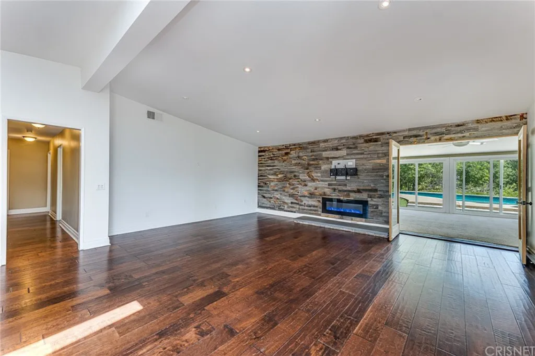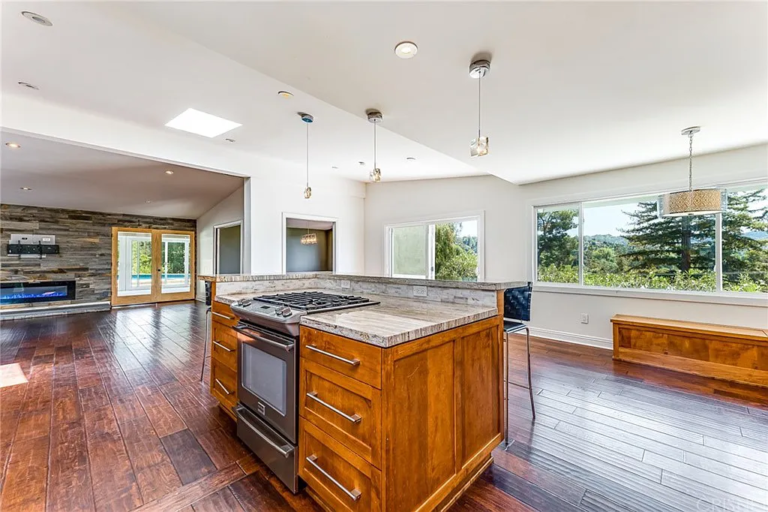 Incredible Woodland Hills South of the Boulevard one-story home at end of cul-de-sac street, on huge 26,838 sq.ft. lot with views of surrounding hills and neighborhood. Double door entry opens to living room with bright, open floorplan with vaulted ceilings, skylight, and decorative electric fireplace. Beautiful extra-large updated kitchen with granite counters, breakfast bar, stainless appliances, and large eating area. 4 spacious bedrooms and 3 bathrooms plus formal dining room and added enclosed approx. 16’ X 34’ patio cover (not in Tax Assessor sq.ft.) Enclosed patio addition includes added bathroom and voice over studio (no permits studio and bath). Perfect for endless summer entertaining! Huge resort like yard with play area, pool, large low maintenance grass area plus a side yard by the garage for added storage. 2 car attached direct access garage. Fabulous hill-top location. Minutes from Calabasas and area restaurants and shopping.