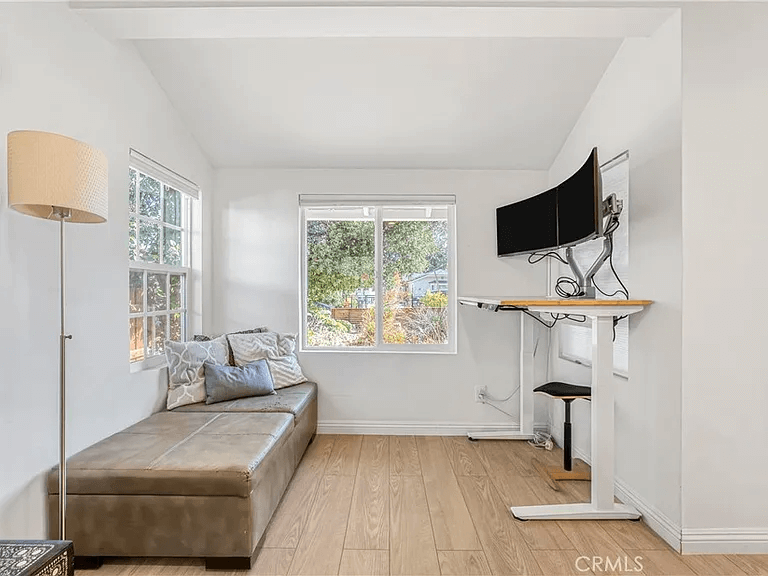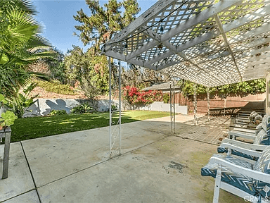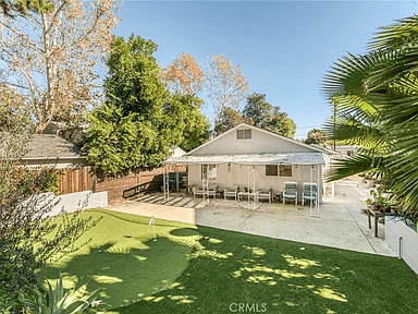 Welcome to this remodeled and thoughtfully updated 2-bedroom, 1.5-bathroom home nestled on a generous 9,190 sqft. lot with opportunity to expand, in this charming quiet neighborhood South of Ventura Blvd. From the moment you arrive, the curb appeal captivates with a perfect blend of modern sophistication and classic charm. Upon entering, you are welcomed into an open-concept living space, seamlessly connecting the living room, dining area, and kitchen. The living room boasts a cozy fireplace, creating a warm and inviting atmosphere. An additional alcove provides a versatile space ideal for a home office or creative workspace. There is an updated kitchen featuring a large island with quartz countertops, upgraded 5 burner Bosch stove and dishwasher, stainless sink, and recessed lighting. The oversized master bedroom and the spacious secondary bedroom both offer custom mirrored closets, maximizing storage space. The updated main bathroom complements the bedrooms with modern fixtures and finishes. This home is equipped with several contemporary amenities, including a tankless water heater, Nest thermostat, and energy-efficient LED lighting throughout. Updated windows and a slider enhance natural light while ensuring energy efficiency. Step outside to discover the expansive rear yard, featuring an artificial turf 3-hole putting green, perfect for golf enthusiasts and entertaining guests. The landscaping is both water-wise and visually appealing, with a smart irrigation drip system, drought-tolerant plants, numerous fruit trees, and a concrete patio. The property also offers a spacious side patio, versatile for various uses, and a convenient 2-car attached garage providing ample parking and storage space. The home is equipped with an efficient Sunpower solar system. Other improvements include 20 AMP 240V EV charger, 30 amp RV hookup, new R38 attic insulation, HVAC ducting, Spectrum underground cable pre-wire, ATT cable internet ready and water pressure regulator. Close proximity to restaurants, shopping, Serrania Charter, Chime and Taft schools, WH Country Club, access to beaches through Topanga Cyn and LA Rams headquarters in Warner Center.