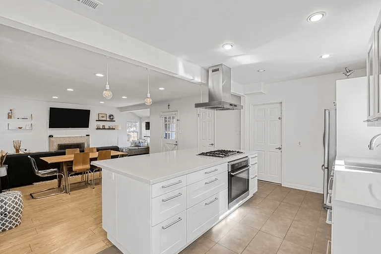 - Kitchen Features: Kitchen Island, Kitchen Open to Family Room, Quartz Counters, Remodeled Kitchen, Self-closing drawers